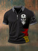 Men's Iron Cross Skull Zipper Short Sleeve Polo