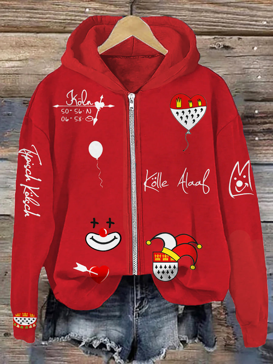 Frauen Kölner Karneval Lässiger Kapuzen pullover mit Reiß verschluss