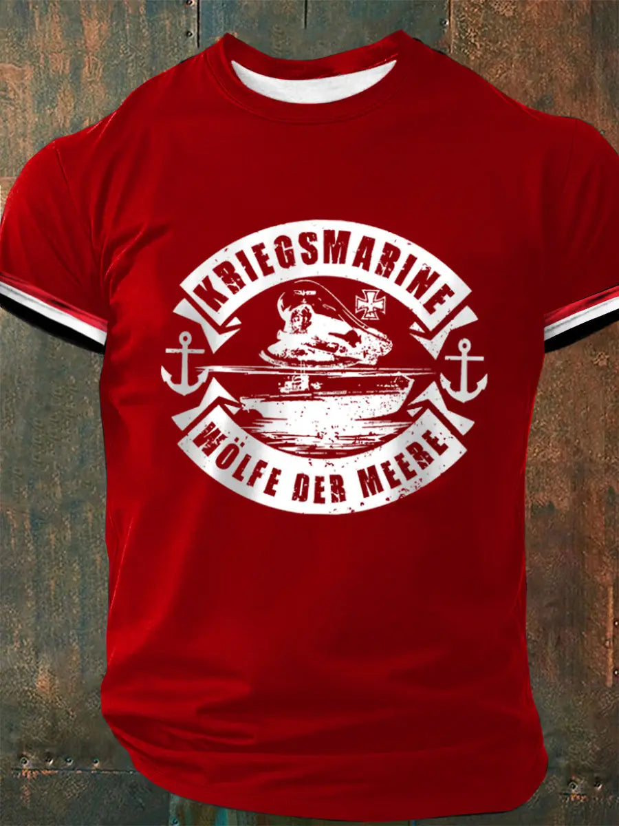 Männer Wölfe der Meere bedrucktes Kurzarm-T-Shirt