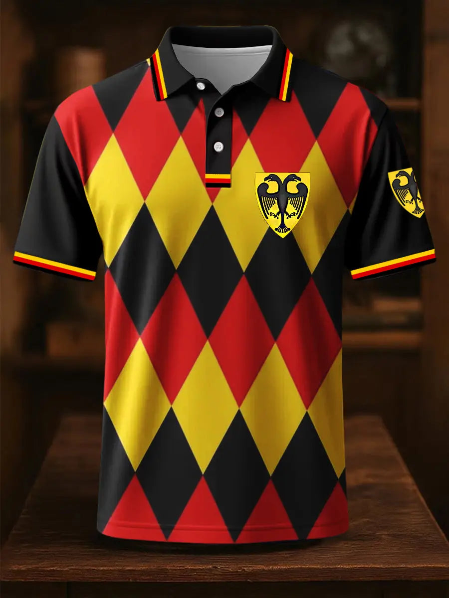 Männer schwarz rot und gelb bedruckt kurzärmliges Hemd