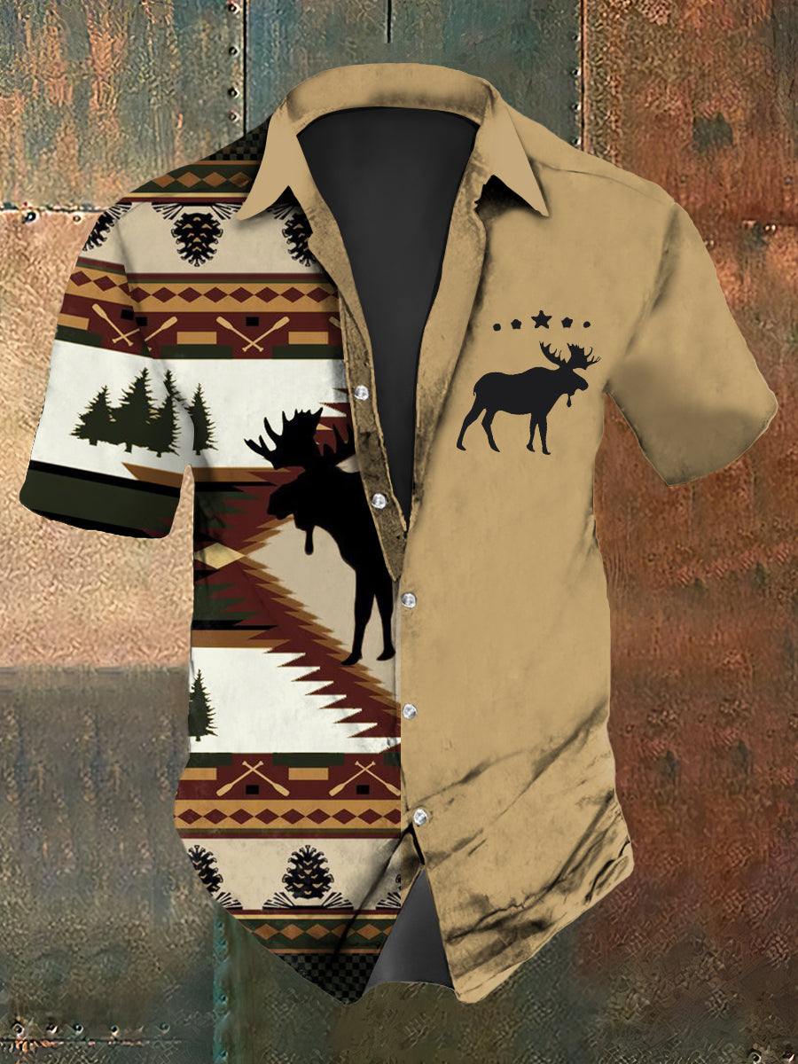 Westliches Hemd mit Hirsch druck Kurzarm für Männer