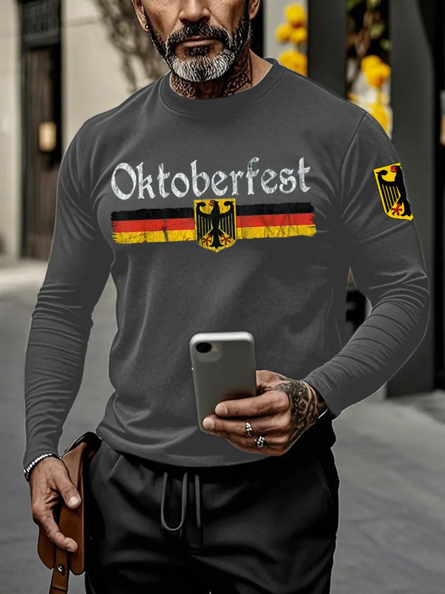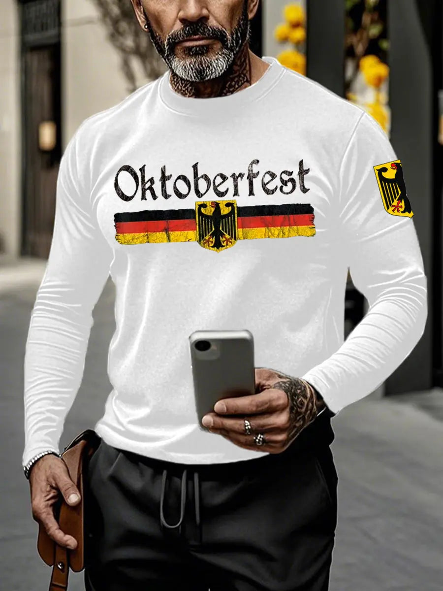 Deutsches Oktoberfest-Print-T-Shirt für Männer mit langen Ärmeln