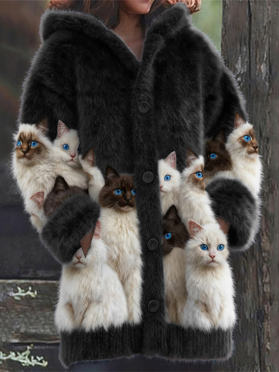 Damen-Flanell-Katzen-Print-Mäntel