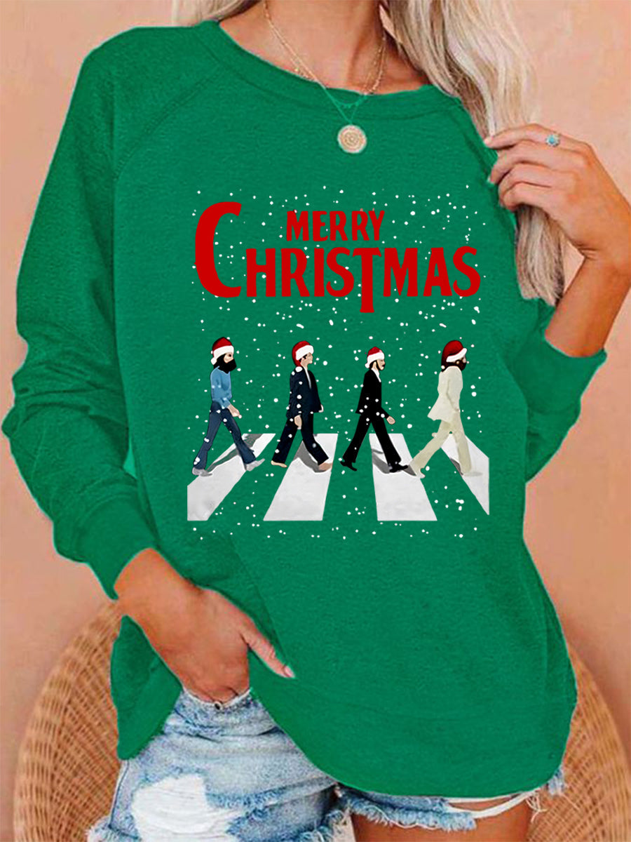 Damen Frohe Weihnachten Retro Klassische Legendäre Rock Band Print Geschenk für Fans Casual Sweatshirt