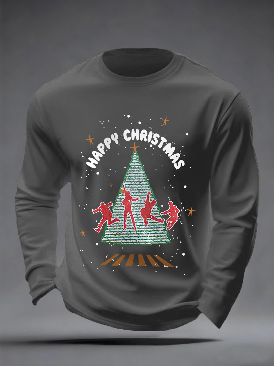 Herren Frohe Weihnachten Retro Klassische Legendäre Rock Band Print Lässiges Langarm T-Shirt