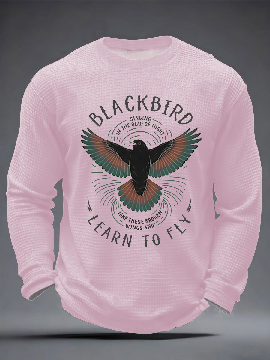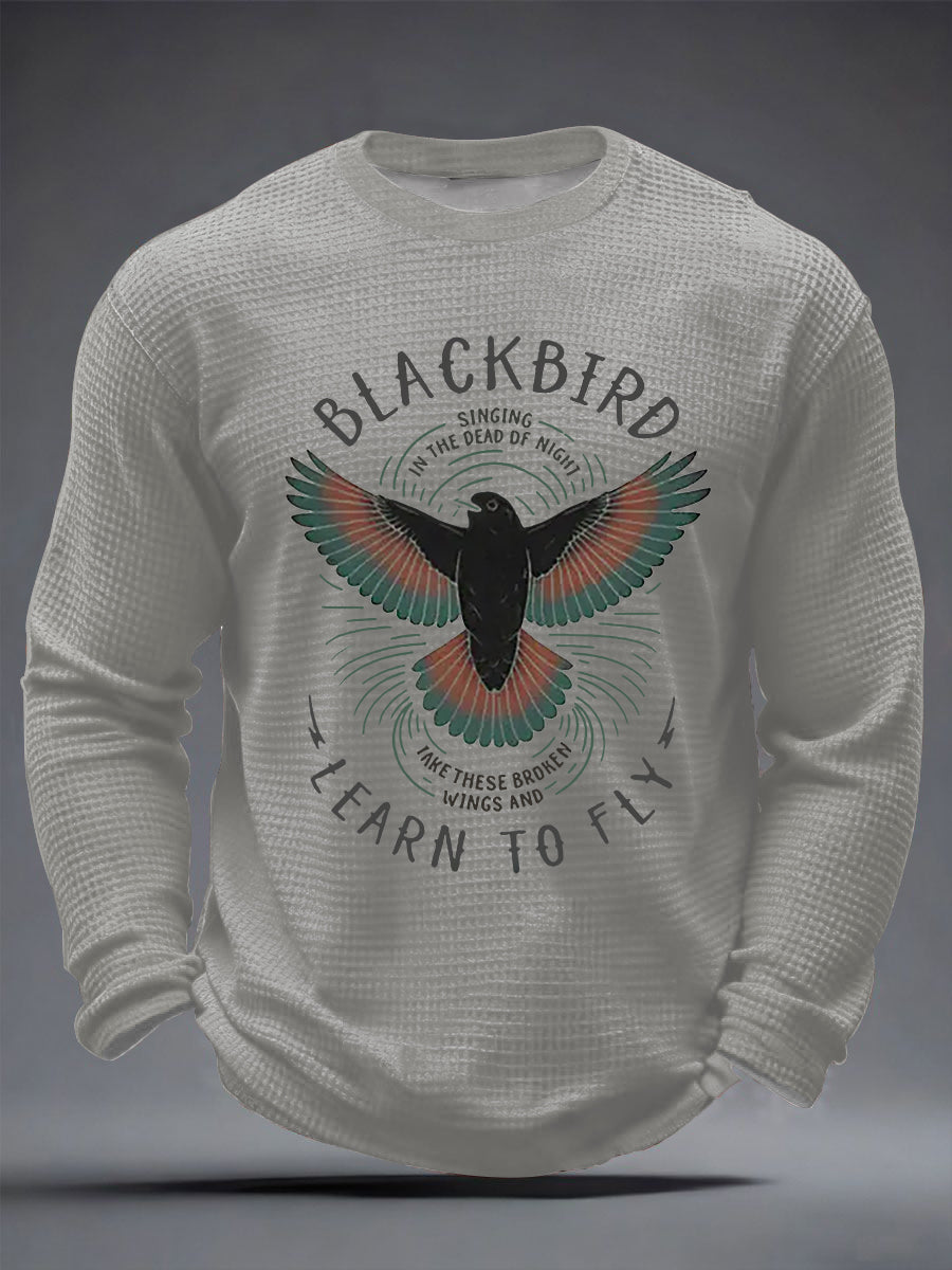 Herren Retro Classic Legendary Rock Band Print Geschenk für Fans Casual Waffel Langarm T-Shirt