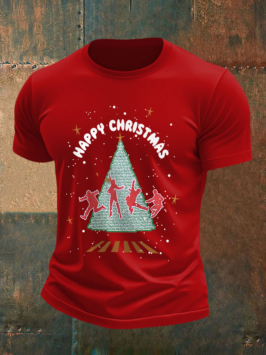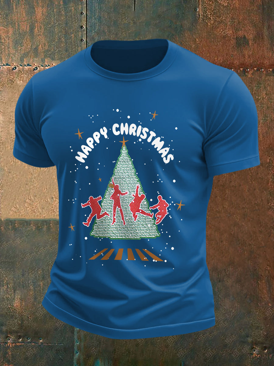 Herren Retro Frohe Weihnachten Klassische Legendäre Rock Band Print Casual T-Shirt
