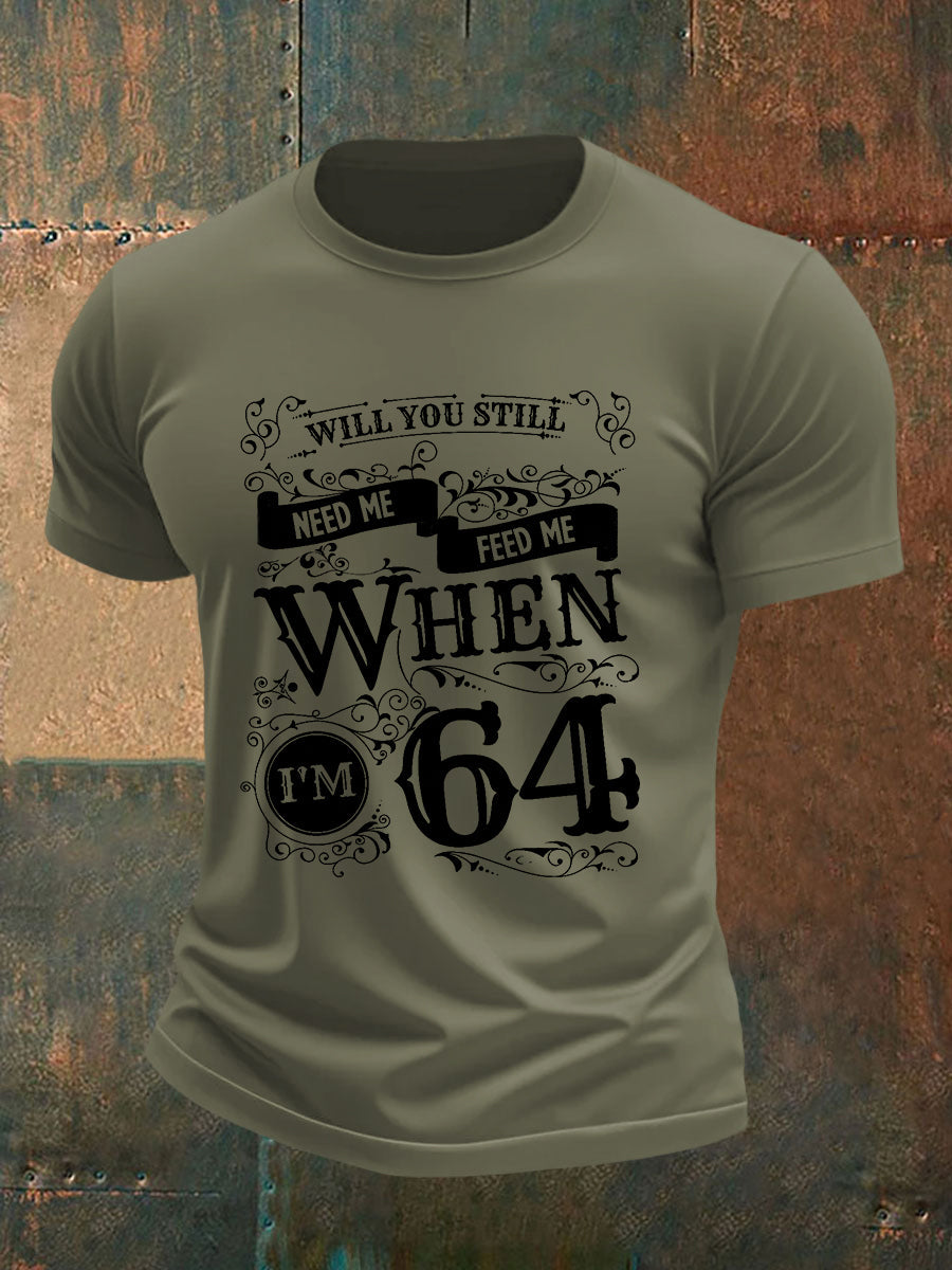 Herren Retro wirst du mich immer noch füttern müssen, wenn ich 64 bin Klassisches legendäres Rockband-Print-Geschenk für Fans Casual T-Shirt