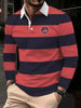 Men's Retro Business Stripe Print Long Sleeve Polo Shirt cherishyouo