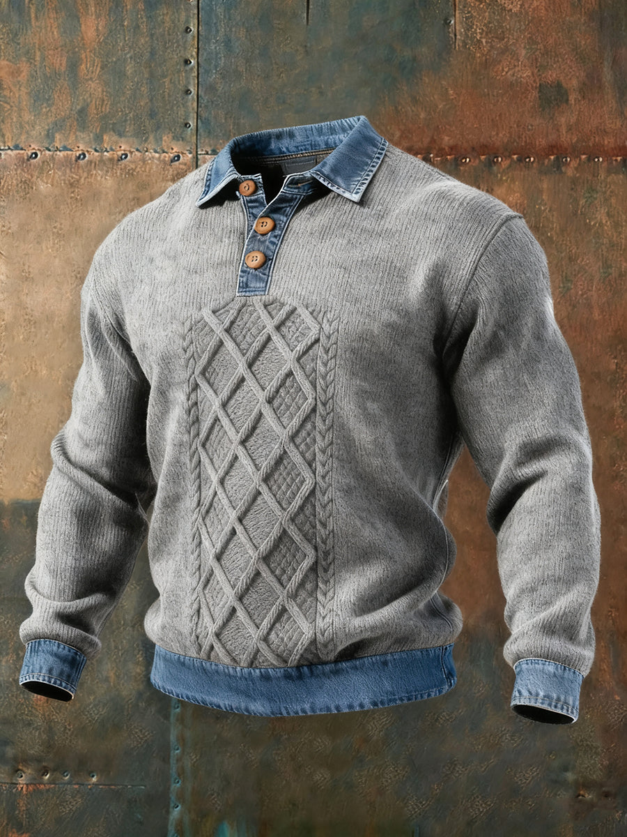 Sweatshirt mit strukturiertem Denim-Kragen für Herren