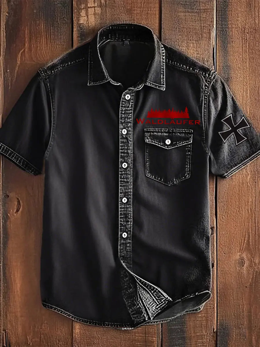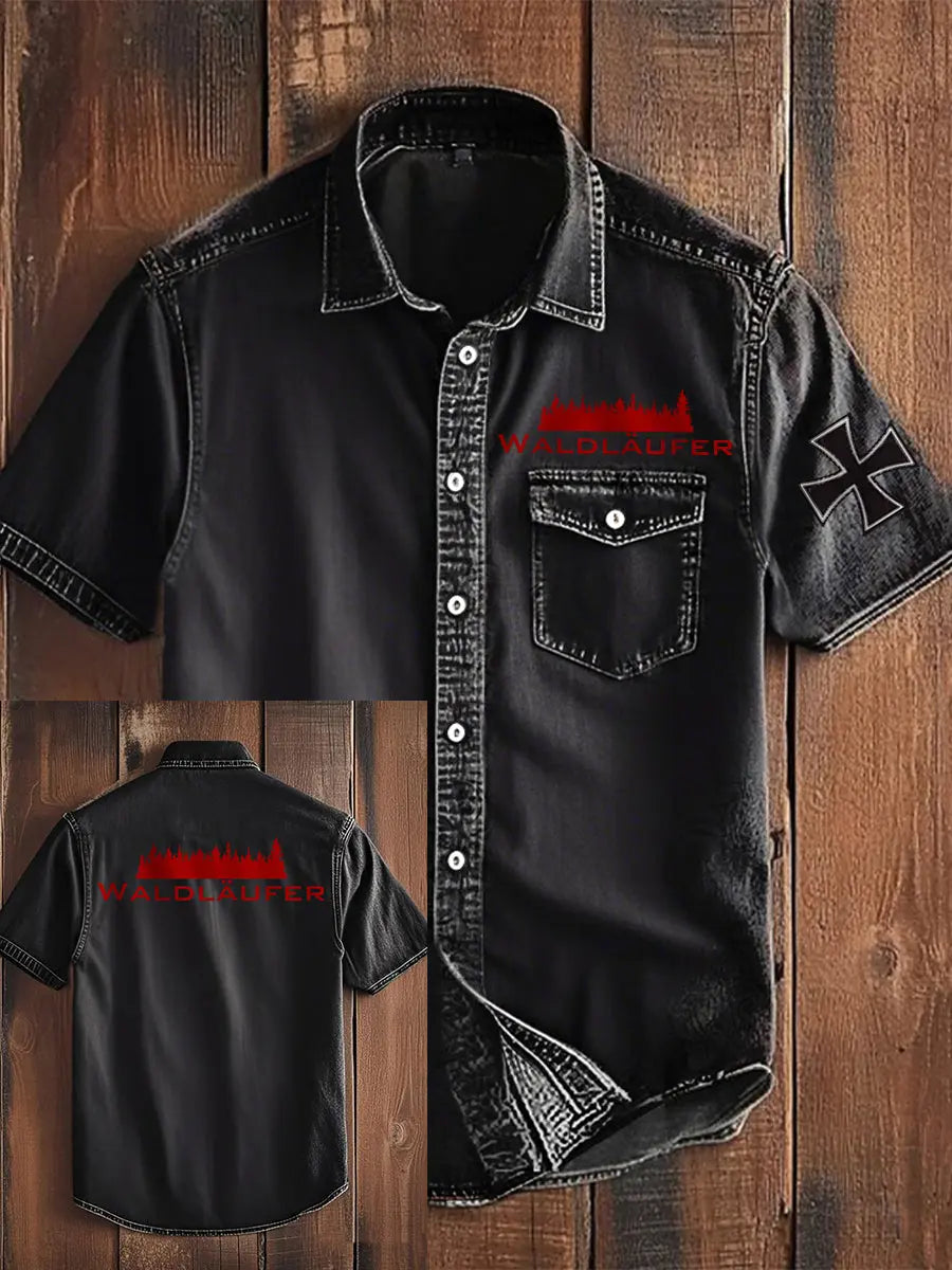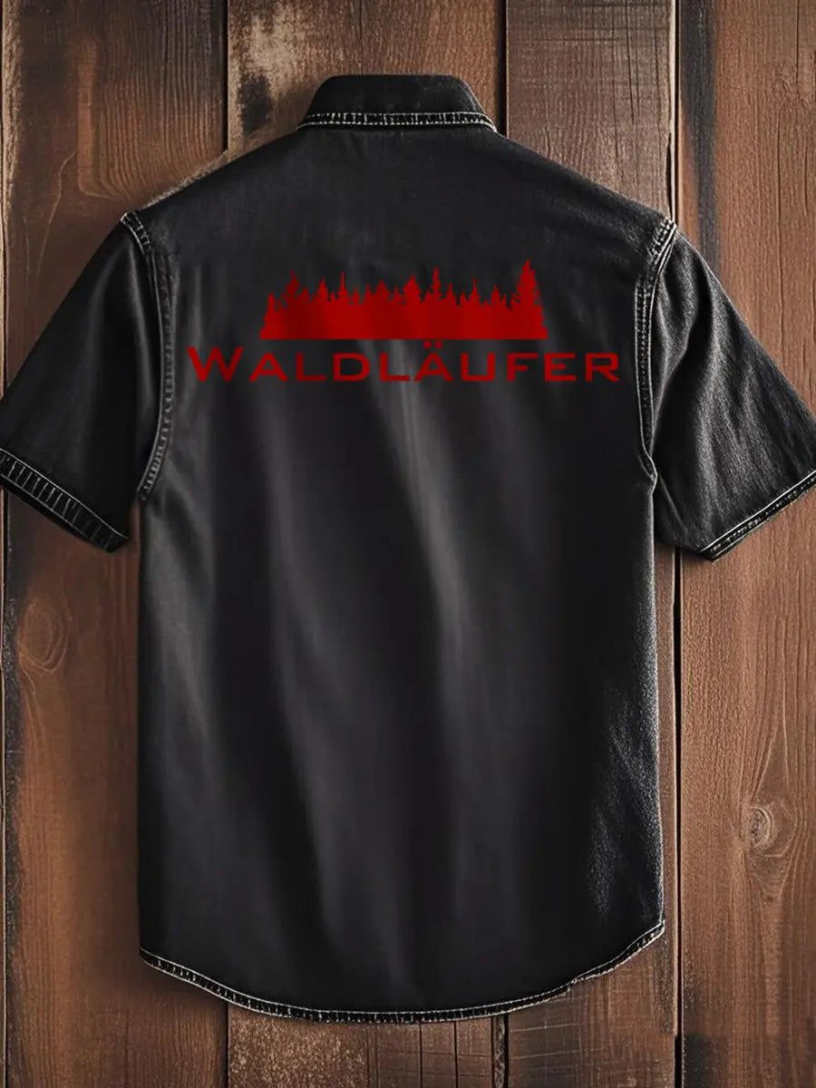 Waldläufer bedrucktes Kurzarm-Hemd für Herren